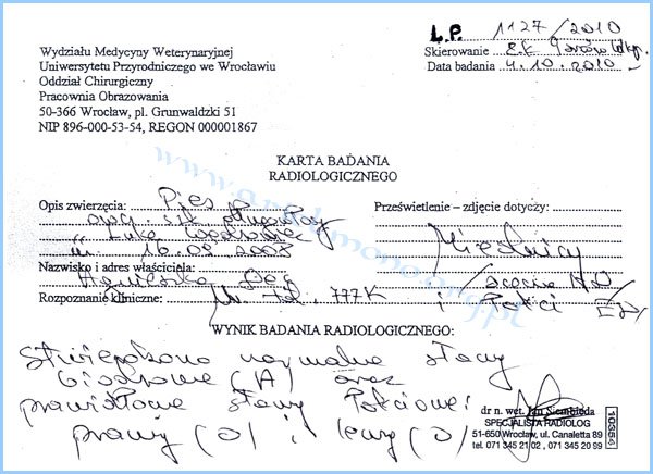 Dodatkowe badanie kontrolne, po tym, jak rozpoznano dysplazję u rodzenstwa.