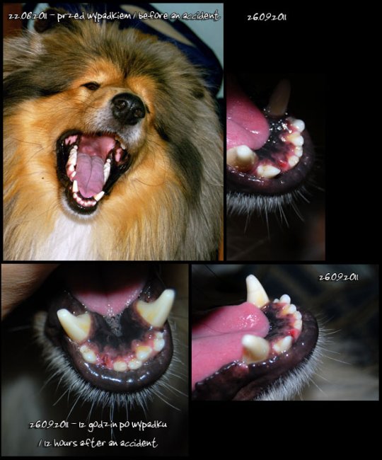 26.09.2011 na skutek ataku drugiego psa Ariel stracił ząb.